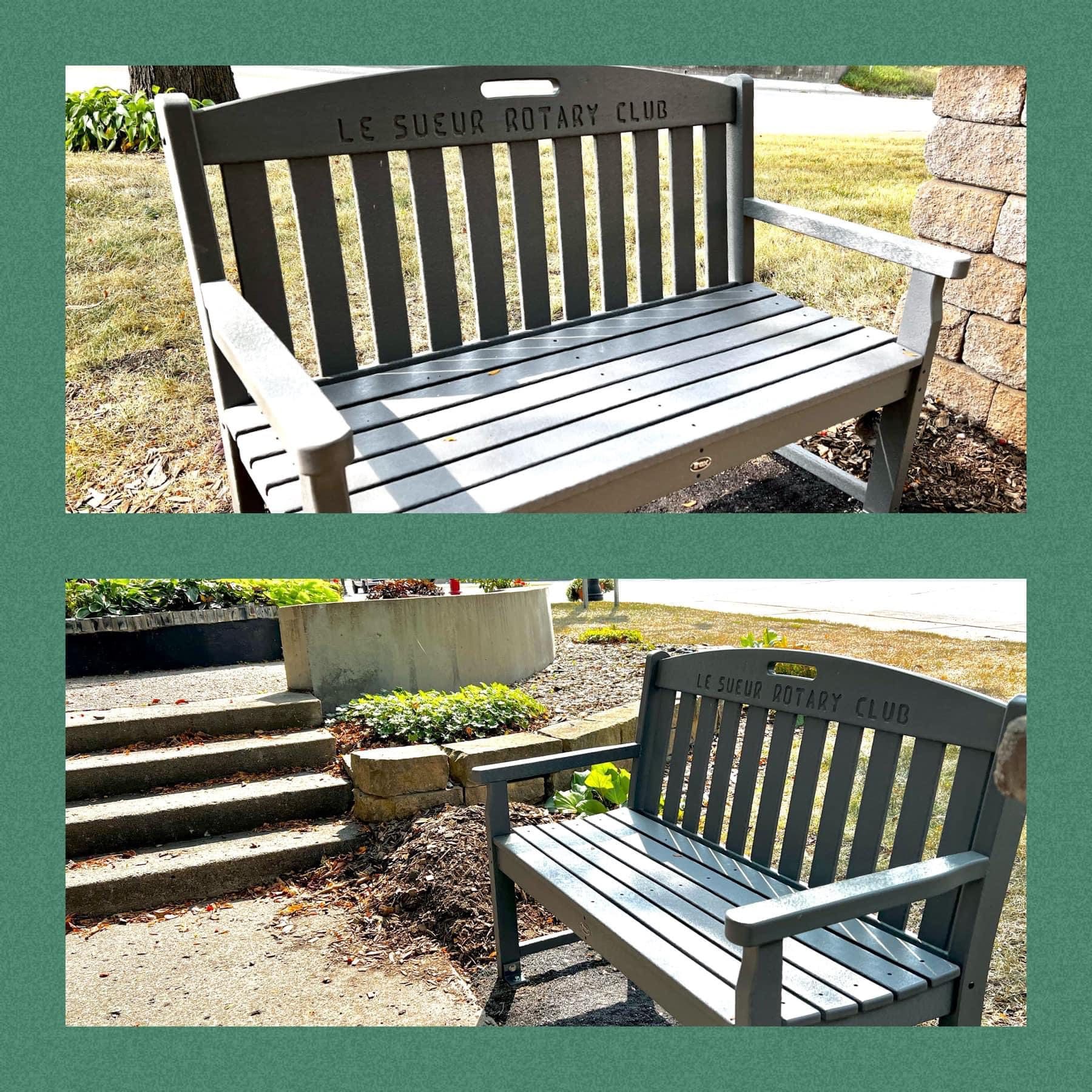 - The Le Sueur Rotary bench in Pierre Le Sueur Park, downtown Le Sueur.
